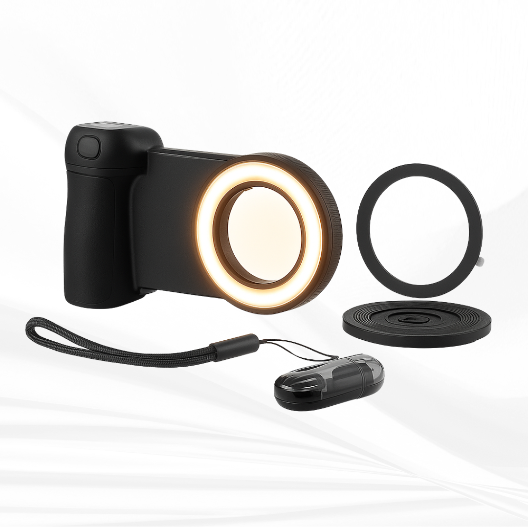 I was skeptical about the magnet’s strength, but this photo handle holds my iPhone extremely firmly — even when I move it fast! The small built-in light already saved several product photos for me because it removes harsh shadows. Highly recommended for anyone who takes lots of pictures.